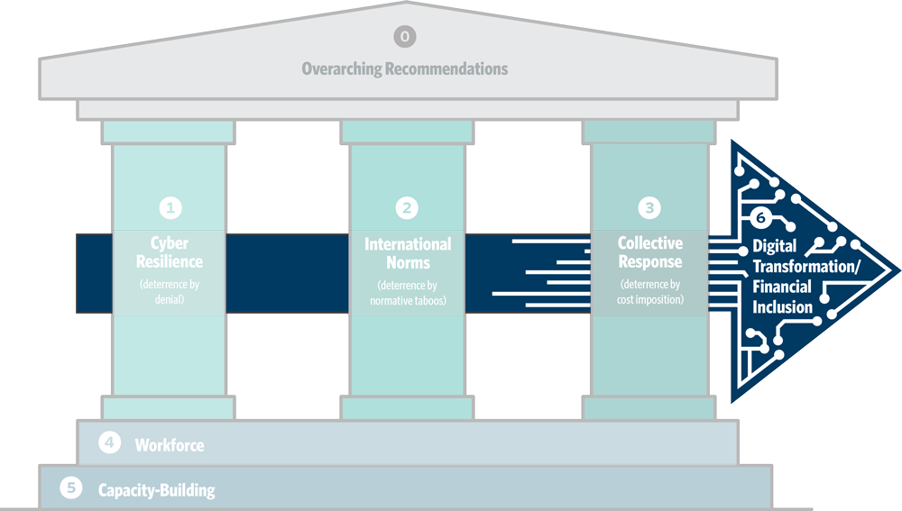 For example, for central bank officials who are already very familiar with ongoing efforts to increase the sector’s resilience, the sections on international norms and collective response will offer new information about how the recommendations focusing on diplomatic initiatives and the national security community can help support their resilience-focused efforts. Similarly, for diplomats focused on advancing international norms, the section on cyber resilience will point to opportunities for implementing these norms. And the challenges with respect to workforce and capacity-building are often neglected but essential to strengthen the system’s weakest links.